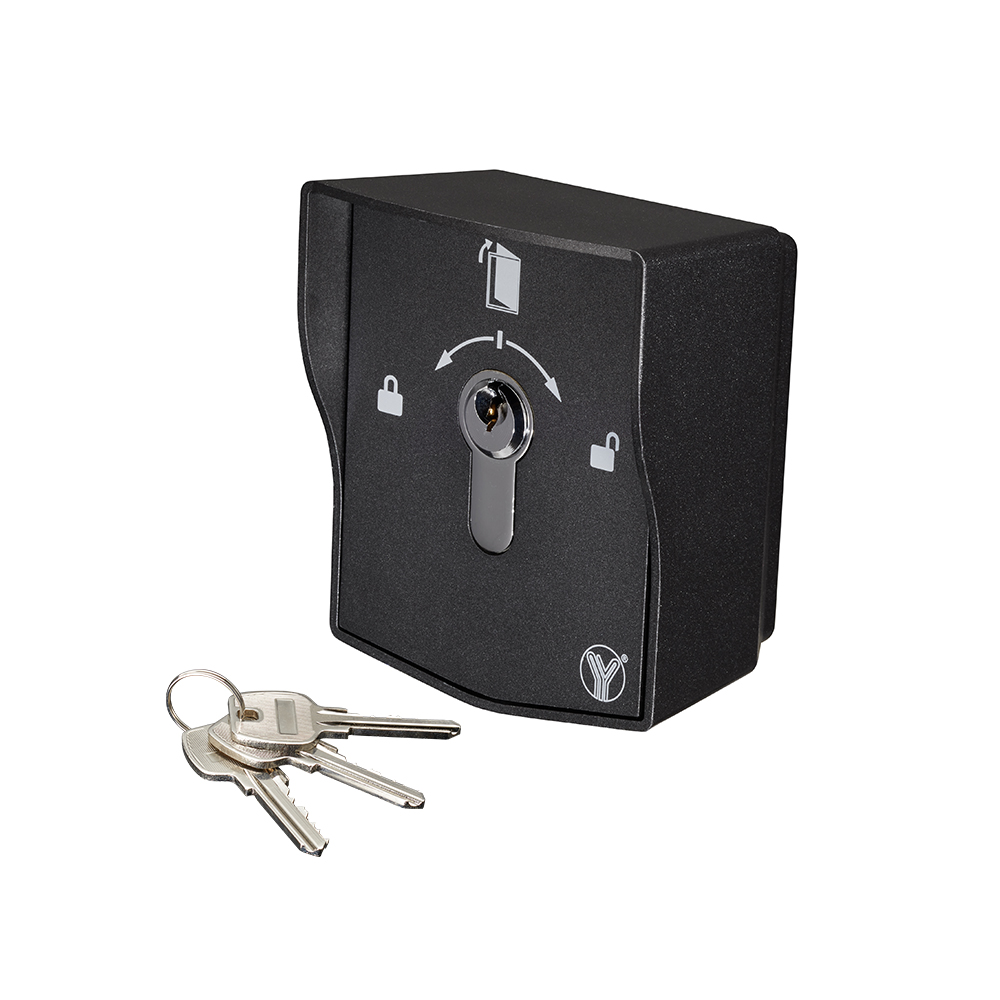 YKS-852B(EN)是一款明裝歐式安全型強制開門匙掣開關,外殼采用全金屬結構,歐式匙掣采用黃銅鍍鉻,內置兩組三觸點耐用型開關,十分堅固耐用。強制開門匙掣開關安裝在室外隱藏處,串聯或并聯在電源供應器與電鎖(設備)之間,當門禁設備故障或緊急情況時,用鎖匙強制斷電或送電開啟電鎖,這是門禁系統工程的預防配套設備。