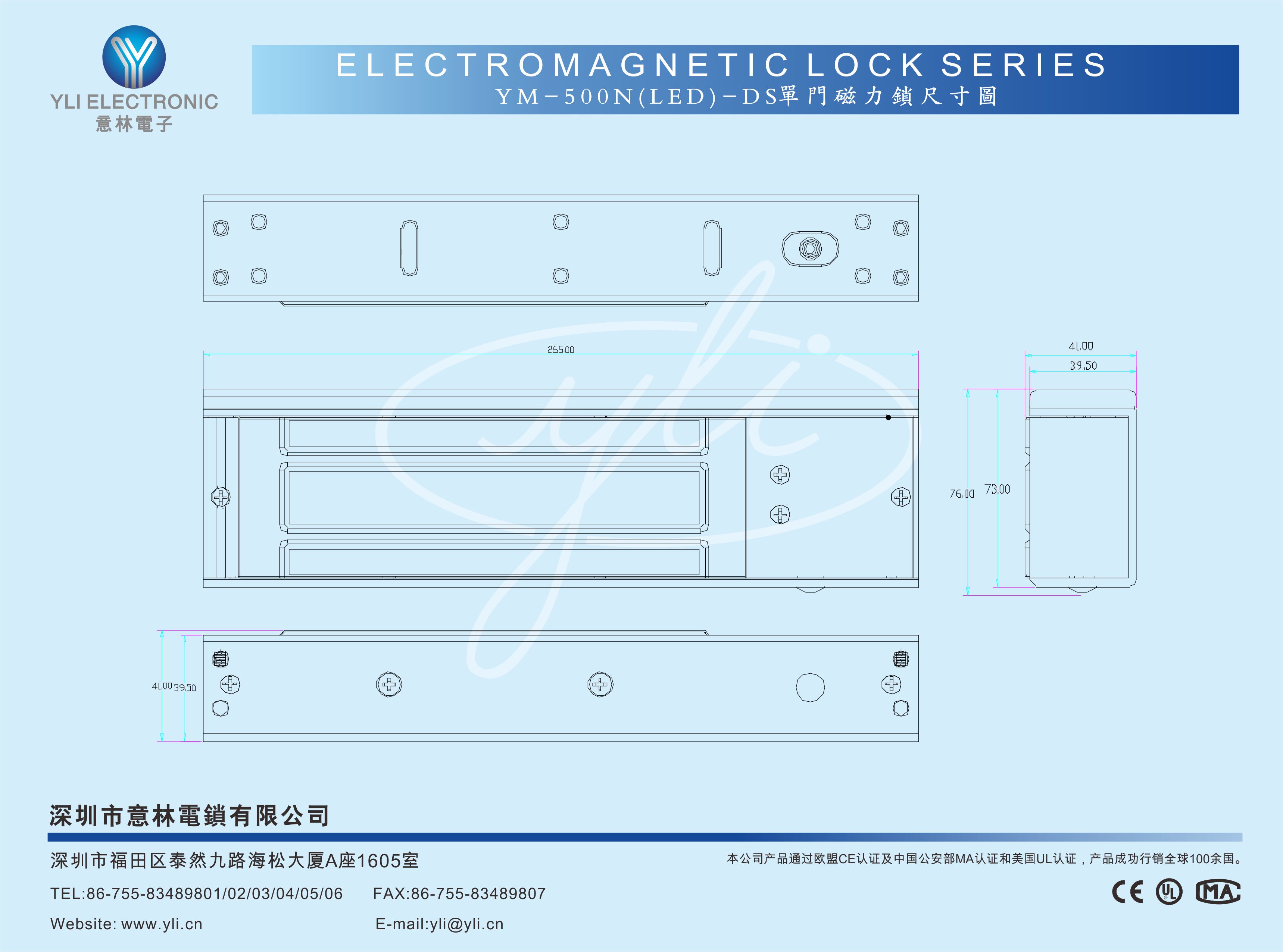 YM-500N(LED)-DS-UL單門磁力鎖附雙信號輸出,通過美國UL294(門禁系統及組件安全標準)及UL1034(防盜電子鎖機械裝置安全標準)認證,產品在安全性、耐用性和環境適應性等方面,經過了全球最嚴格標準的檢驗,並達到及超過了該標準的要求,為建筑師、顧問工程師、系統集成商和終端用戶提供了權威、客觀的產品性能和質量保證。意林磁力鎖鎖芯特殊加強焊接工藝,抗撞擊力及抗扭力比常規生產工藝強2-3倍,更堅固耐用。表面處理,通過國家實驗室240小時鹽霧測試,達到防氧化、防銹、防腐性能。適用于日常辦公場所或沿海鹽霧,潮濕(如:地鐵,機場,核電站,跨海大橋,港口碼頭,醫療機構,沿海城市建筑)等場景使用。